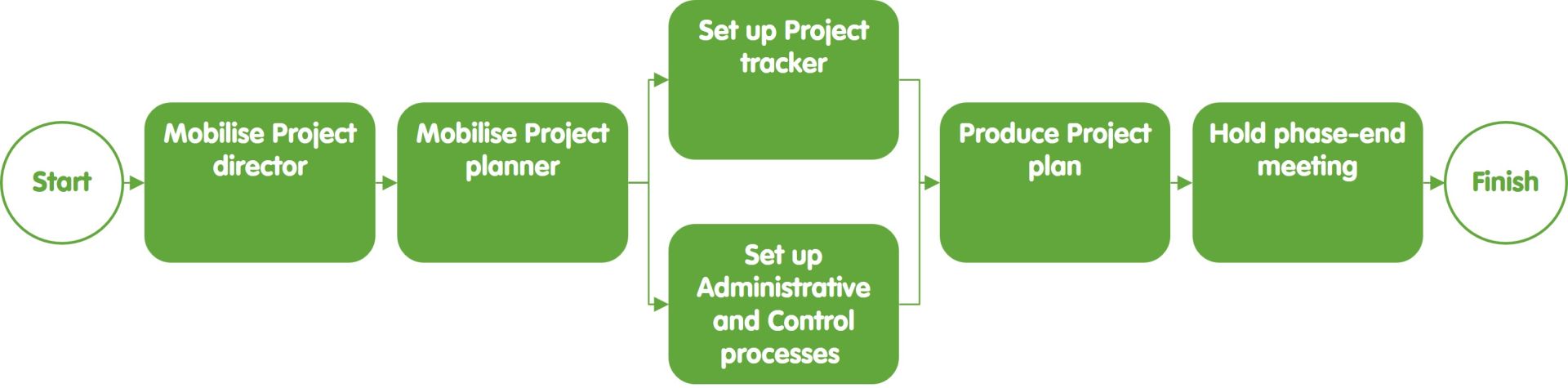 These activities must happen in sequence. You cannot produce a Project plan before setting up the processes needed to manage its development. You cannot hold a phase-end meeting before completing the Project plan. The sequence ensures nothing important gets skipped.