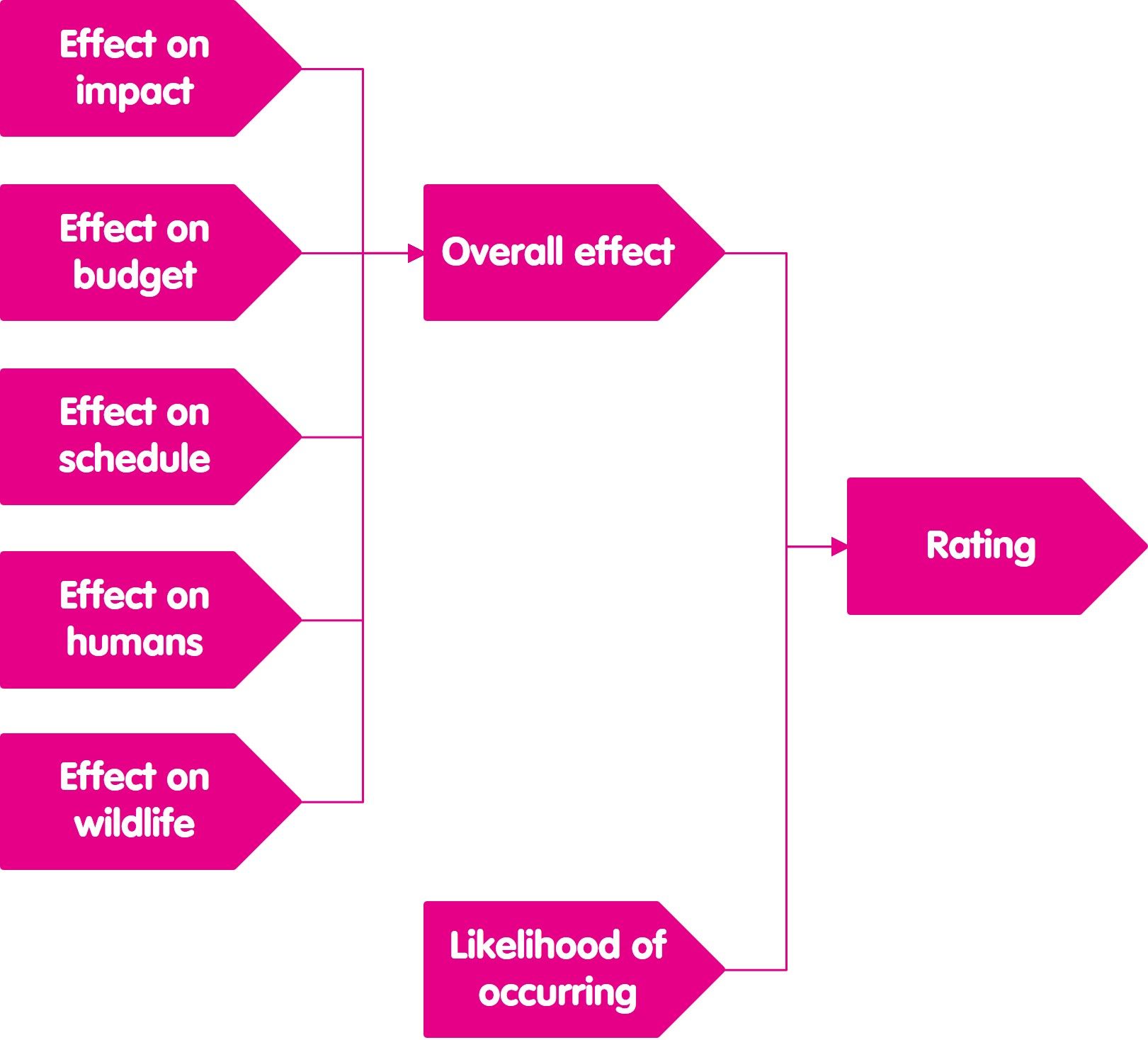 For budget effects: Very high means additional costs exceeding available contingency. High means additional costs consuming most contingency. Medium means additional costs within planned contingency. Low means minimal additional costs.
