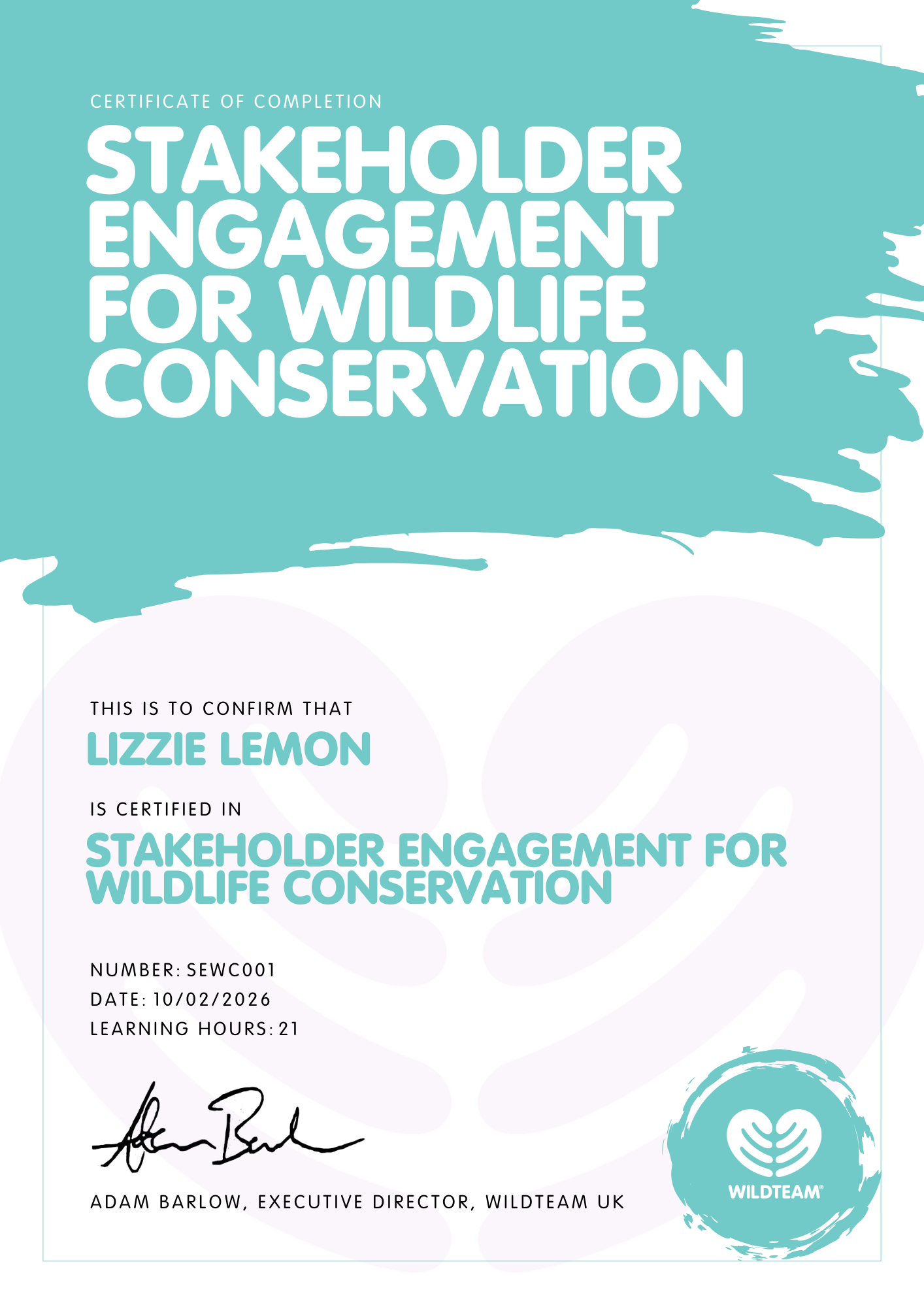 Once you earn your certificate you will be added to our WildTeam global skills directory.